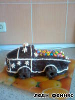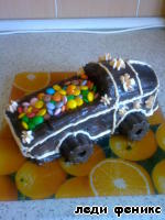 Машинку украшала глазурью, кремом, колеса - печеньки, а в кузове конфетки м"м. Уф, в общем, как могла.