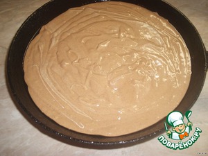 Полученное тесто перелить в глубокую форму для выпечки, предварительно застеленную фольгой и смазанную, и поставить в духовку (я не использовала фольгу, и так нормально отошел бисквит)