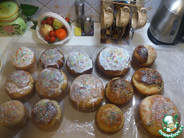 Формы предварительно смазать тeплым нутряным жиром и присыпать манной крупой (после выпечки куличи легко отделяются от стенок формы).