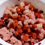 Я не нашла зеленого перца, зато от других блюд остались четвертинка желтого и 3/4 красного, их и использовала. Перец надо очистить, нарезать на полоски и затем ромбиками. Добавить к свекле. |