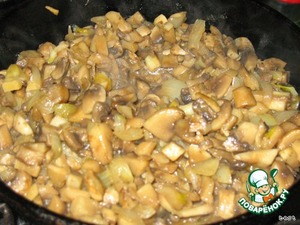 Грибы нарезать небольшими кусочками. Репчатый лук очистить и измельчить. Разогреть в сковородке растительное масло, обжарить лук. Добавить грибы и готовить до полного выпаривания жидкости.