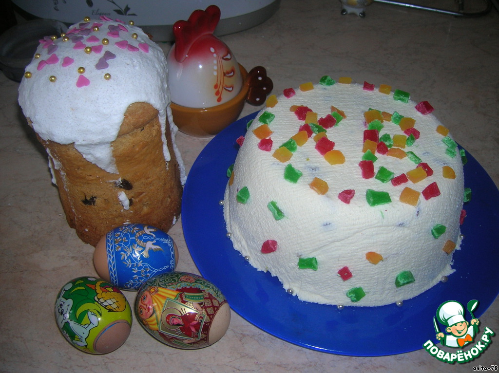 Доброго времени суток всем! Христос Воскресе! С праздником, дорогие мои! Хочу предложить вам два самых замечательных и нужных рецепта. Это творожная пасха и пасхальный кулич, которые я готовлю 1 раз в год на Пасху. Рецепты настолько замечательные, что всегда получается очень вкусно и вызывает шквал аплодисментов. И, что немаловажно, рецепты проверены временем!