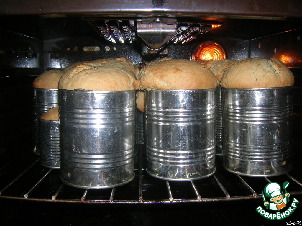 Обминаем, выкладываем тесто в формы не более 2/3. Оставляем на 20 минут. Выпекаем в разогретой духовке до 200 градусов, в конце убавляем до 180. Выпекать минут 40-60, все зависит от формы и духовки.