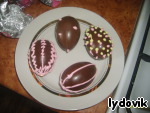 Берем шоколадные яйца и разрисовываем их разноцветным айсингом