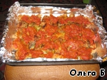 Выкладываем жареные помидоры (у меня были жареные и замороженные - я их просто разморозила). |