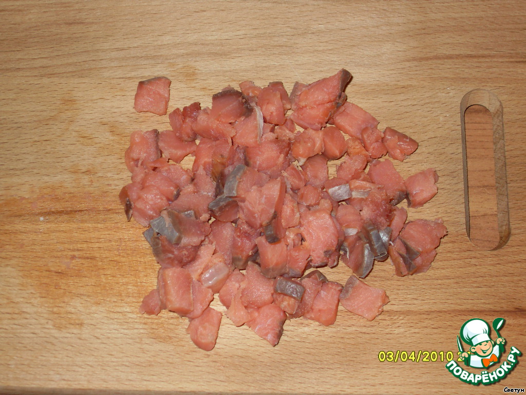 - Рыба (копченая, у меня горбуша)