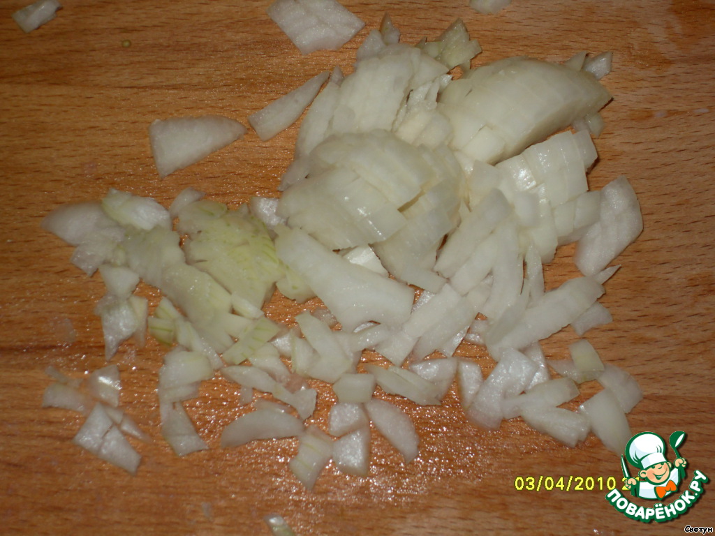 почистить и нарезать кубиками лук