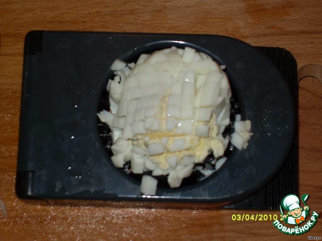 почистить и мелко нарезать яйцо