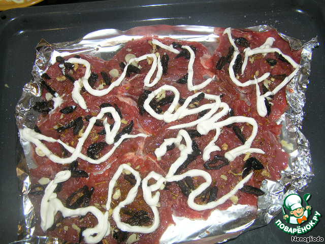 По сути, это отбивные с черносливом под сметаной и сыром, приготовленные в духовке.
