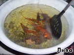 Время варки около пяти минут после нового закипания воды. Раки краснеют и всплывают. Кастрюлю нужно снять с огня, но не спешите вылавливать раков тут же. Они должны настояться в бульоне 20 минут.Вылавливаем, выкладываем, кушаем.