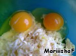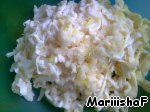 Плавленый сыр натираем на крупной терке, добавляем чеснок...