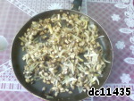 • Режем шампиньоны кубиками, лук перьями. Полученную нарезку обжариваем на растительном масле.