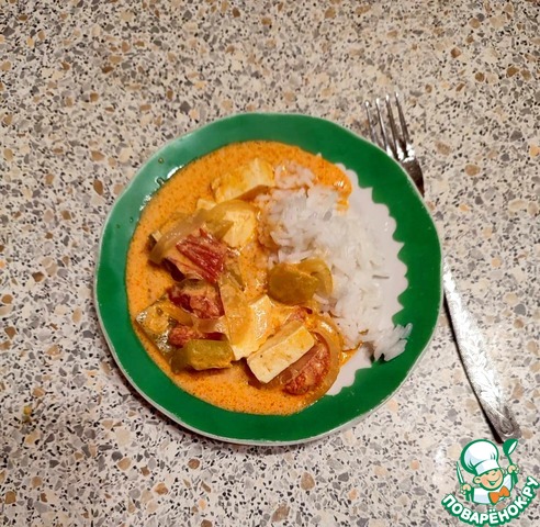 Выкладываем все в глубокую посуду. Подаем с отварным рассыпчатым длиннозерным рисом.