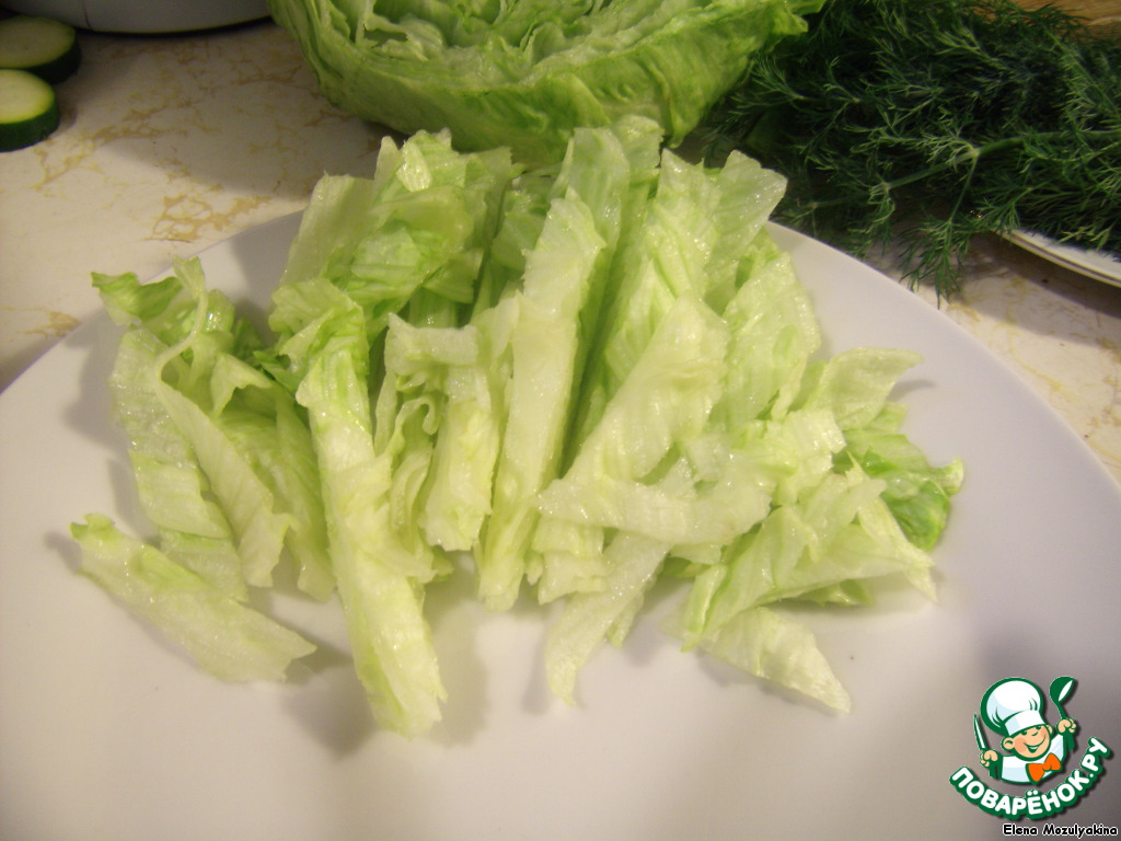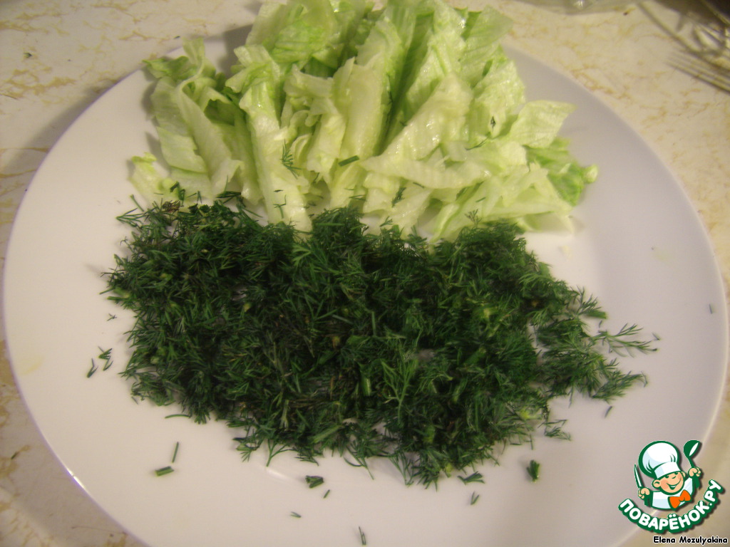 - Листья салата / Салат (я использовала айсберг) — 0,4 вилок
