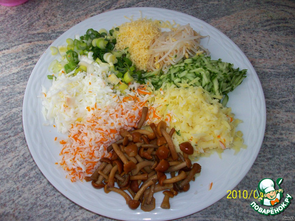 Салат можно сделать любой и не обязательно выкладывать слоями, можно всe перемешать.