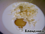 Для соуса взбиваем сливки, яйцо и половину сыра (сыр, как показала практика, лучше потереть на мелкой терке, почему-то у меня рука взяла потереть на крупную).