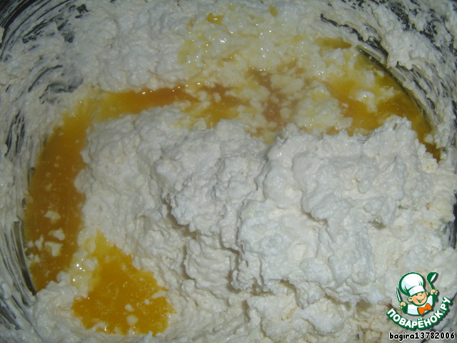 В последнюю очередь введем остывшее масло и все перемешаем.