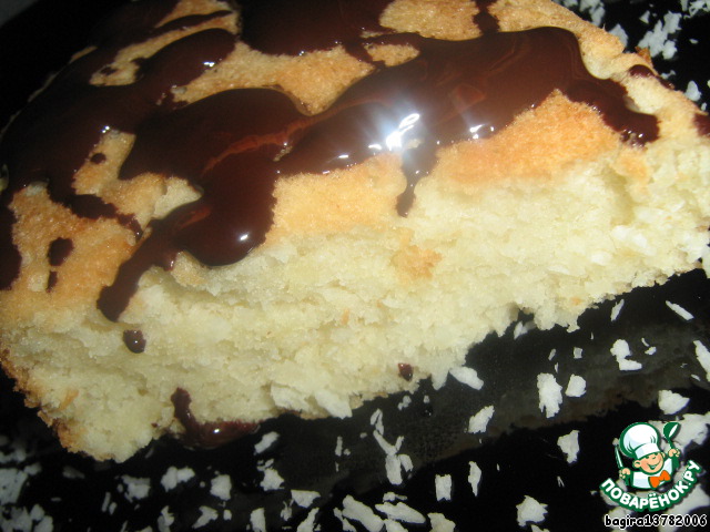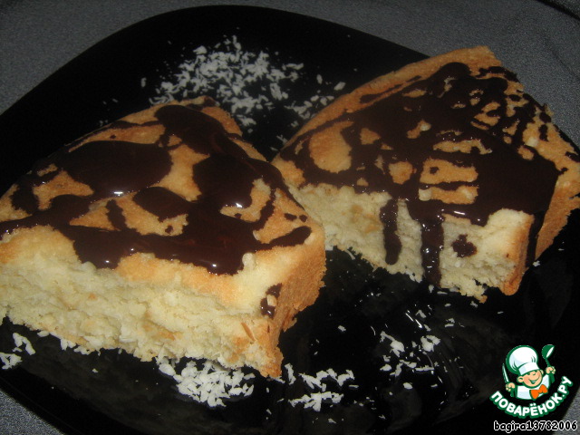 Пирог можно полить сверху растопленным шоколадом или глазурью.