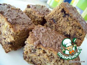 Печем в духовке на небольшом огне столько времени, чтобы спичка выходила из кекса практически сухой (у меня где-то около часа, но все зависит от духовки). Остужаем кекс, вынимаем. Вот такой он получается. Сверху я еще немного полила растопленным шоколадом.
