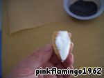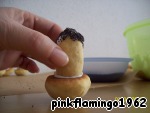 Пока наши шляпки и ножки остывают мы готовим "клей". Для чего взбиваем яичный белок со стаканом сахарной пудры до бела. Для удобства приклеивания ножки к шляпке-срезаем одну часть каждой заготовки так, что бы получился ровный край. Теперь будем склеивать ножки-смазываем тонким слоем взбитого белка одну половинку ножки и склеиваем со второй половинкой. Низ ножки - который мы не отрезали (он такой заострeнный у нас получился) смазываем слегка белком и посыпаем маком - наши грибы же из лесу вестимо! Верхнюю часть ножки - ту что мы подрезали, смазываем "клеем" и приклеиваем к шляпке, ставим гриб на шляпку и даeм всей этой конструкции высохнуть.