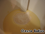 Ввести просеянную муку, перемешать шпателем, постепенно добавить молоко.