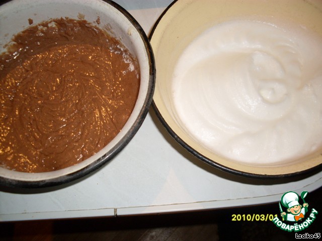 • Белки взбиваем в крутую пену и аккуратно вводим в тесто...