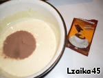 • Всыпаем пачку "Горячего шоколада". Вот он у меня на фотографии... За неимением такового, можно добавить какао...