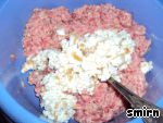 Смешаем два вида фарша или сразу можно взять готовый (смешанный) и разобьём туда яйца.
