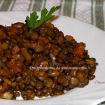 Наливаем отвар чечевицы (1 стакан), варим до загустения. Затем заправляем чечевицу приготовленным соусом и немножко прогреваем на плите.