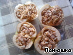 Яблоки вымыть, разрезать пополам и чайной ложечкой аккуратно достать сердцевину, формируя чашечку. -