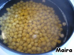 Нут замочить на ночь. Отварить в подсоленной воде до готовности, примерно 1 час.