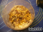Посыпать ореховой начинкой и слегка прижать её руками.