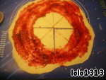 Круг разделить на 8 частей. Затем смазать тесто тонким слоем клюквенной начинки.