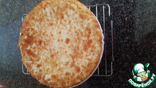 Готовый пирог выложить на решетку и накрыть салфеткой на несколько минут. Потом можно его нарезать.