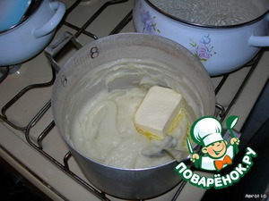 В загустевший крем добавляем ванилин и масло и хорошо размешиваем