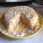 Вот что у нас вышло. Остатками крема смазываем бока торта.