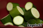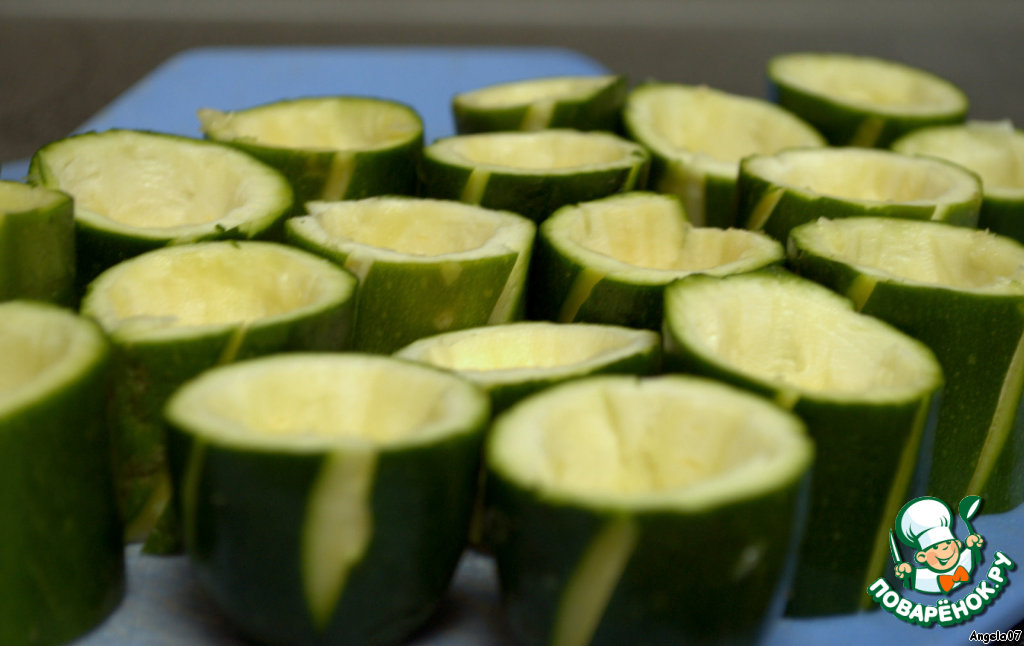 разрезать цуккини на равные части примерно 2-3 см шириной