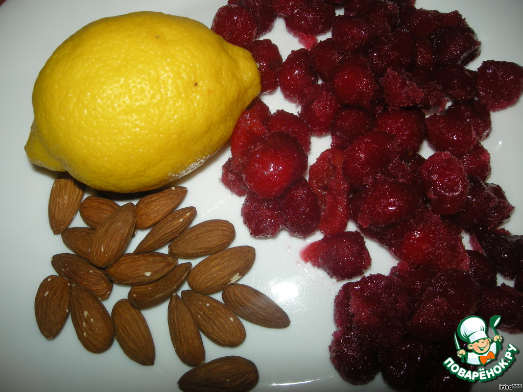 • Отдельно смешать вишни, цедру лимона и измельченный миндаль.