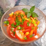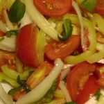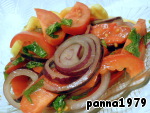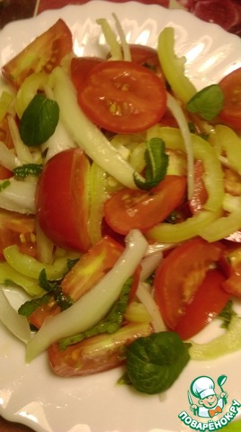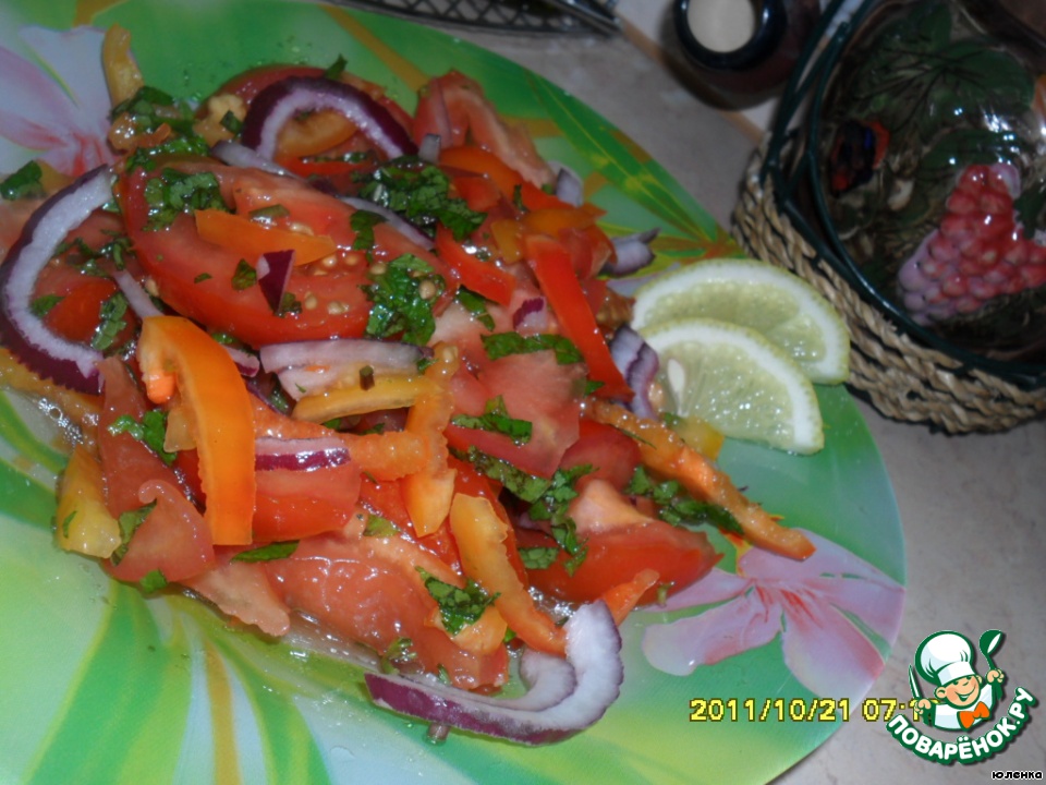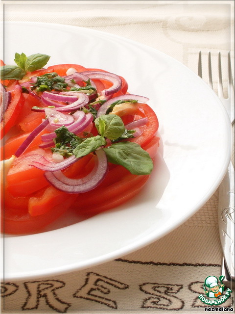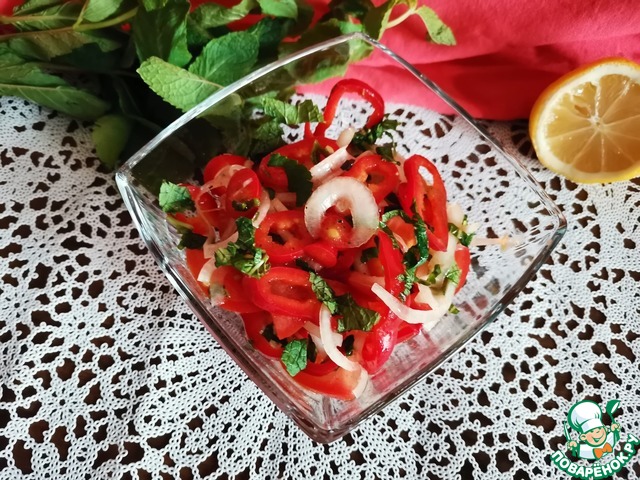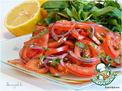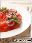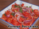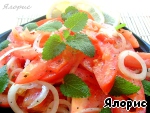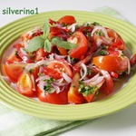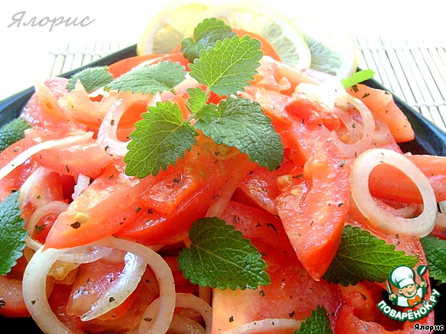 Помидоры, в сочетании с мятой и лимонной заправкой, "заиграли" по-новому. Получается очень свежий и сочный салат. Очень хорошо подходит к мясным блюдам, шашлыкам, к рыбе. В первый раз я попробовала такой салат ещe в Турции в ресторане отеля, в котором мы жили. А тут на днях ковырялась на одном из турецких сайтов и набрела случайно на этот салат... и очень кстати, а то я про него совсем забыла. Весна... хочется овощей побольше... а тут что-то новенькое, свеженькое...