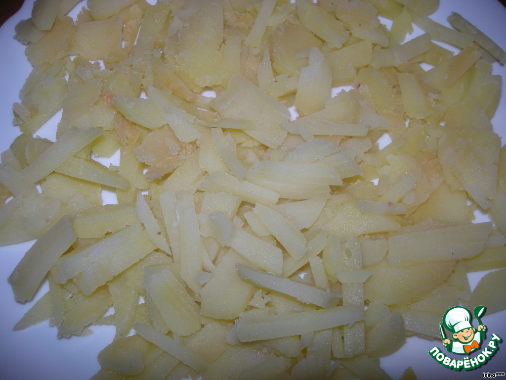 Все ингредиенты нарезать мелкой соломкой, выложить горкой, (либо просто перемешать) заправить подсолнечным маслом