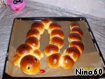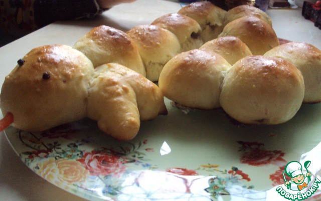 Дать змейке подняться на листе минут 15-20, смазать яйцом и поставить в нагретую духовку.