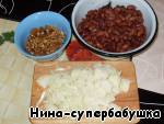 Фасоль, лук и орехи - все вместе - пропустить через мясорубку. -