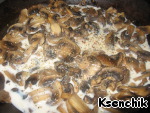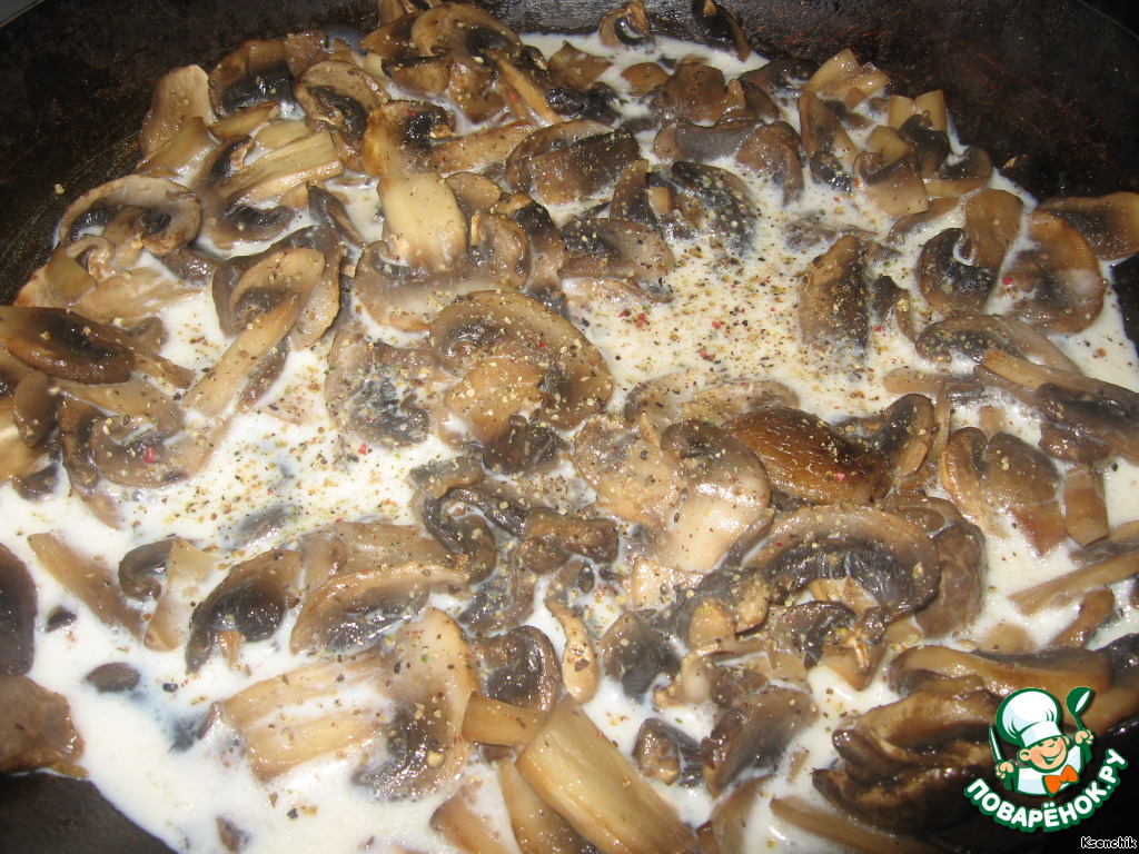 Слегка обжарить с 2-мя ложками оливкового масла, когда жидкость выпариться добавить молоко, смесь перцев и тушить еще минут семь (без крышки).