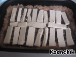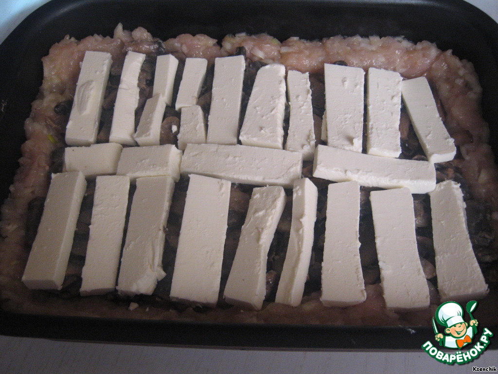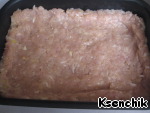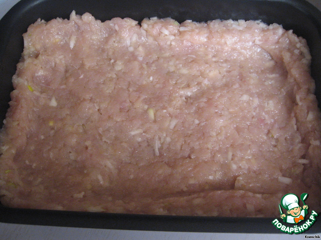 Фарш выкладываем, в смазанную маслом форму, делаем небольшие бортики.