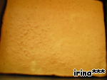 Полученную массу вылить в смазанный маслом противень с бортиками тонким слоем и выпекать, пока бисквит не зарумянится.