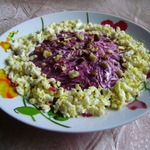 Этот салат закусочный под крепкие спиртные напитки. Ни когда не будет похмелья, если на него налегать.