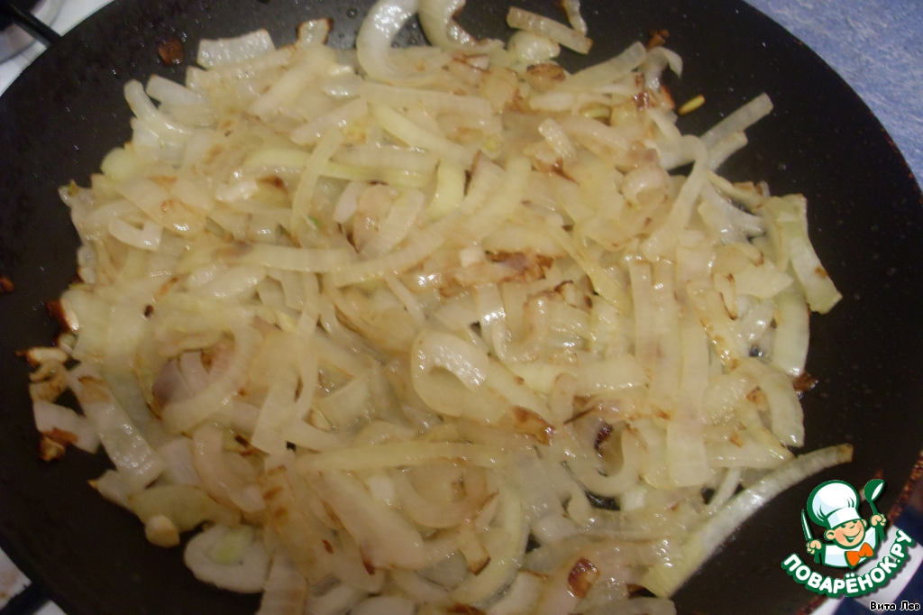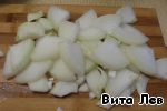 Нарезать полукольцами лук. У меня лук крупный, поэтому я брала 2 шт. и резала четверь-кольцами.