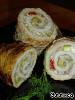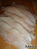 Перед подачей удаляем нитки. Нарезаем крупными кусочками. |