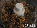 В середине измельчения добавить грецкие орехи. Измельчаем всё почти в пудру.