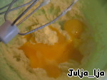 У яиц отделяем желтки от белков. Желтки добавляем к массе. Растираем.